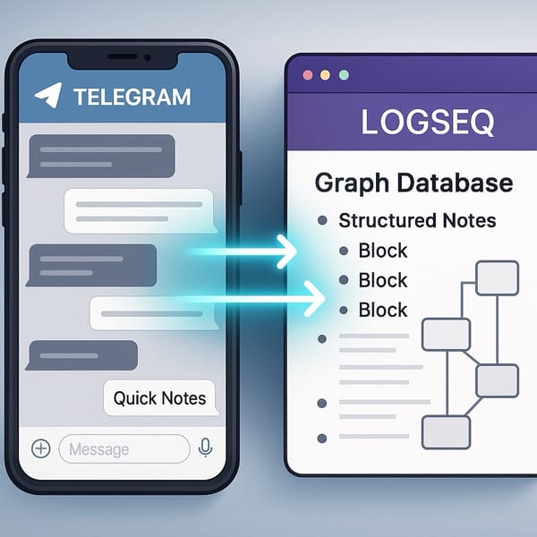 Часто случается так, что находится интересная статья или страница в Интернете и ее хочется записать. Я часть пользуются для этих целей Google Keep. Но с тех пор, как я начал использовать Logseq, чувствуется потребность записать их туда. Но в Logseq пока нет веб-клиппера, а заходить в приложение не очень удобно. Хочется это сделать "одним кликом". Так родилась идея плагина Inbox Telegram для Logseq. Плагин вставляет записи из Telegram в журнал Logseq текущего дня.